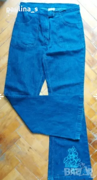 2. M / XL - Еластични винтидж дънки с външни джобове и бродерия само на единия крачол - 28,99лв