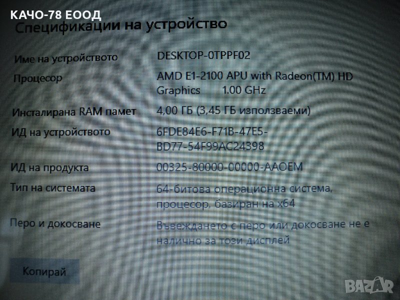 Фирма „КАЧО-78“ ЕООД – Продава: