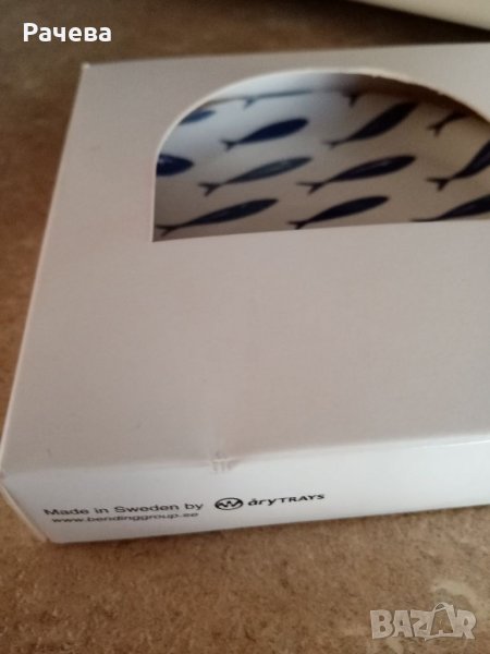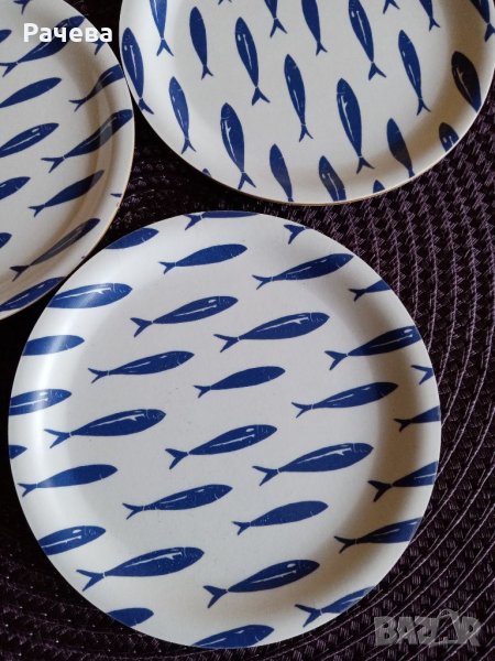 Нова, плътна ръкохватка Малки чинийки на сини рибки. Две купички за ядки. Цената е за всичко.