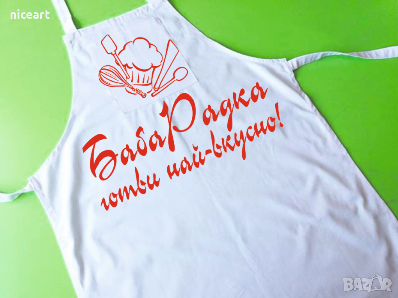 При нас може да поръчате готварска престилка с персонален надпис за всеки повод.Експресна изработка за 1 ден.Цена 27 лв
