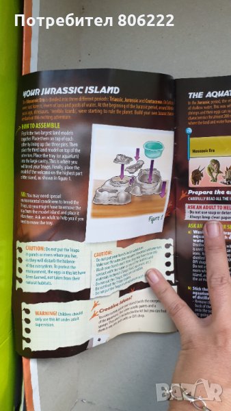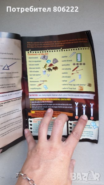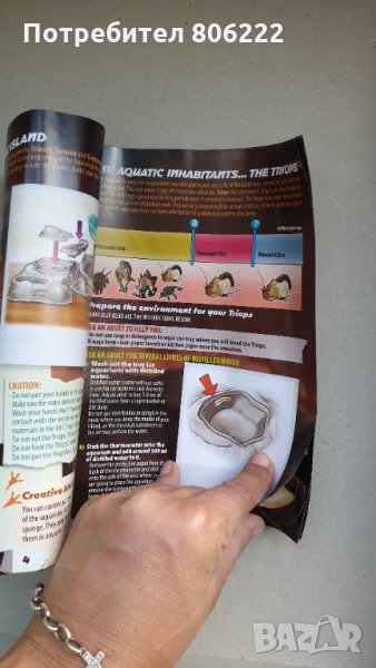 Яйцата и на трипос ги използвахму всички, но така и не се излюпиха, явно комплекта е престоял повечко в хиполенд. Може да се закупят от магазин за рибки. Семената са останали, те са на бяла детелина, а и също си купуват дори от кауфланд, и почна. Вулканът не е отварян, малкия имаше интерес само към трипос, искаше домашен любимец, а те са добър вариант за малки деца, първи стъпки към отглеждане на тещо живичко. Играчкага е мн интересна. Пълнели сме басейнчето и с онези набъбващи топчици тип желе от джъмбо и детото си играе на остров с динозаври.