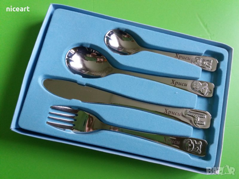 При нас може да поръчате комплект детски прибори от полирана стомана с име на вашето дете.Чудесен и оригинален подарък за всеки повод