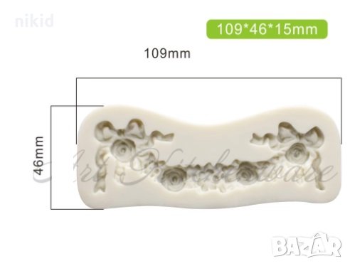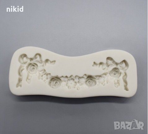 Извита лента дъга с розички и панделки силиконов молд борд кант форма фондан украса декор торта и др → Обява 32776588