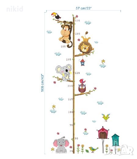 Сафари Зоо Диви Джунгла животни метър за стена и мебел детска стая лепенка стикер самозалепващ → Обява 32776760