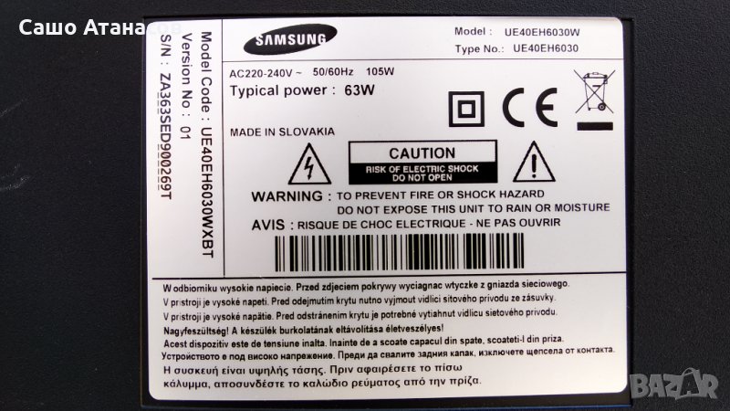 SAMSUNG UE40EH6030W с дефектна матрица ,BN44-00552A ,BN41-01894A ,BN41-01892A ,WIBT30A ,BN41-01899A