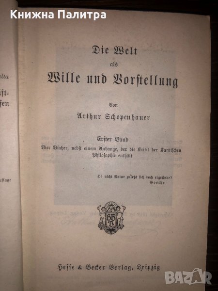 Die Welt als Wille und Vorstellung-Arthur Schopenhauer, снимка 1 - Други - 32777699 Die Welt als Wille und Vorstellung-Arthur Schopenhauer, снимка 2 - Други - 32777699 1/2