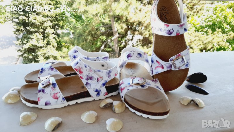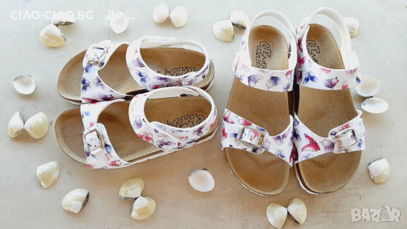 №31,34,35, Сандали за момиче GEM'S бели с розови и лилави пеперуди