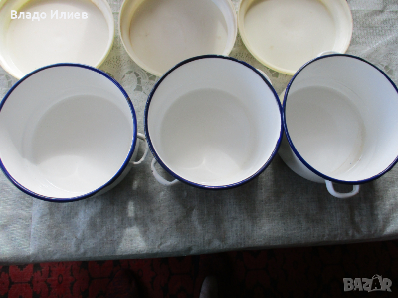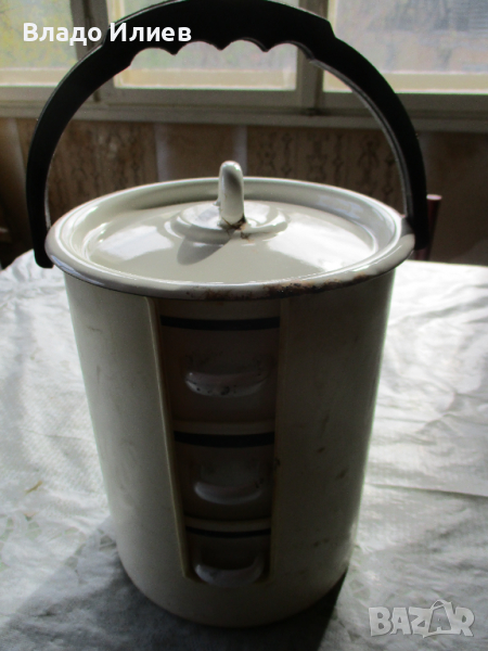 Съдовете за пренасяне на храна са удобни и фунционални.С тях храната се пренасяне сигурно и без разливане Емайлирани са и добре запазени-вижте снимките .Цена-70 лв.