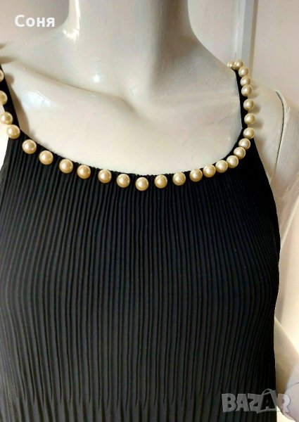 Нова уникална рокля с етикет.Супер елегантна и красива.Катранено черна с бели красиви перли.Има и подплата.За три закупени артикула поемам доставката