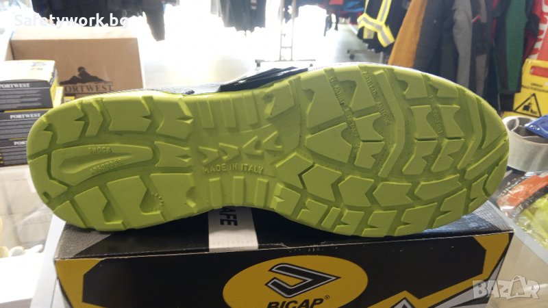 сцепление, максимална гъгъвкавост, лекота и комфорт. Шок абсорбер в областта на петата и клетка за намаляване умората. Бомбе композитно (издържащо на удар с енергия 200 J), размер - 12 на бомбето осигурява широчина и удобство на всяко ходило. Пластина неметална FLEX TEXTILE PLATE® осигуряваща гъвкавост, 100% защита 1100 N и температурен комфорт на ходило поради