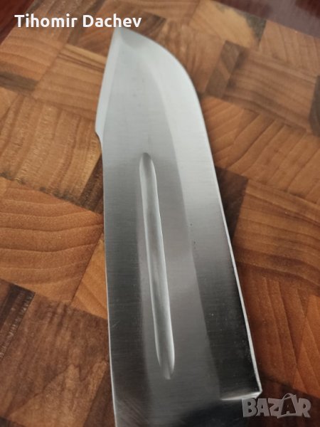 Ножът е много стабилен и здрав. Има кания от естествена кожа (вижда се на снимките)