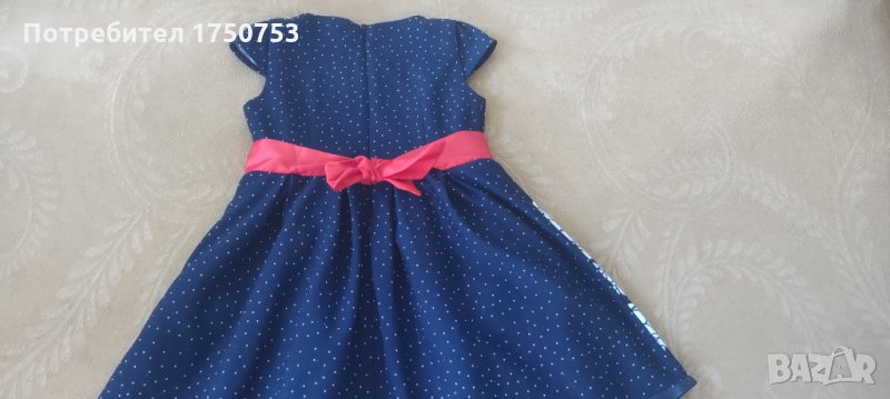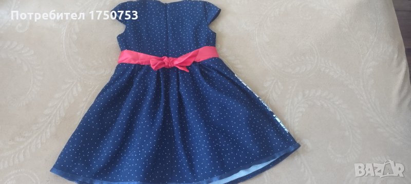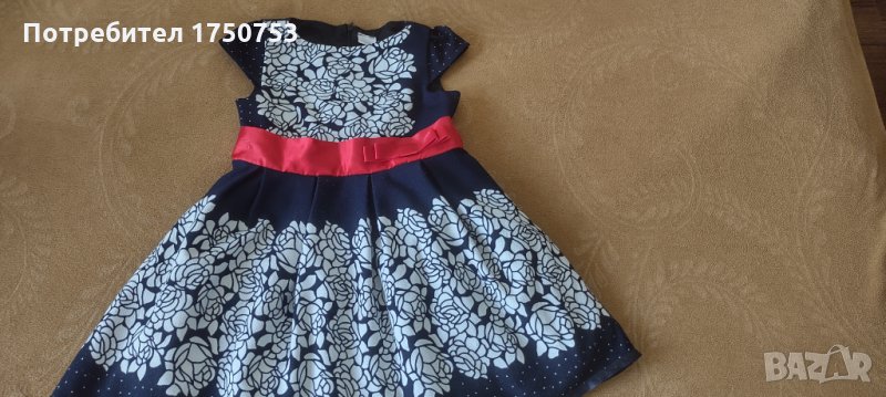 Лот от 2 бр. стилни рокли за госпожица 3-4 г. Размер 104/110 см. Допълнителни размери на роклите:дължина от рамото до долу 56 см ; ширина при гърдите 30 см. Закопчават се с цип на гърба. Рокличките прилягат много елегантно и са много добре запазени. Цена на двете 25 лв. Поотделно: цената на синята рокля с цветя и червена панделка е 14 лв ;Бялата е на цена 12лв.