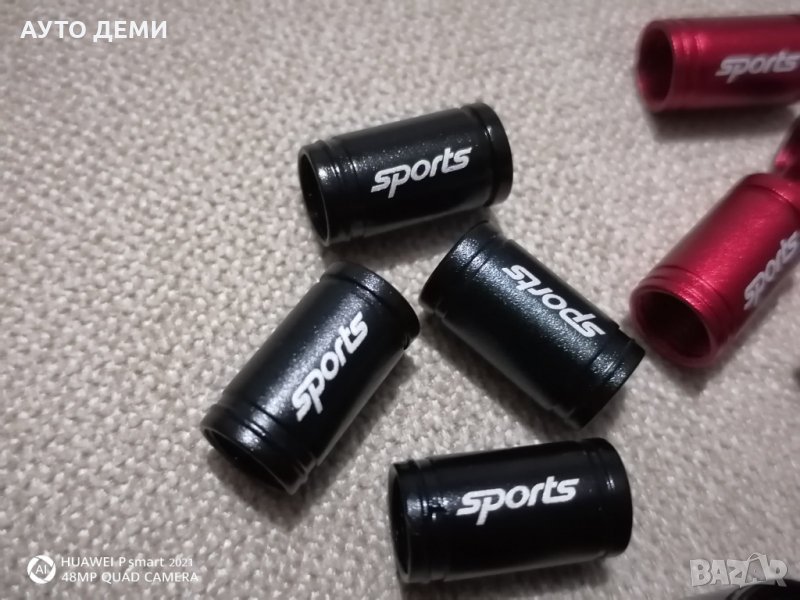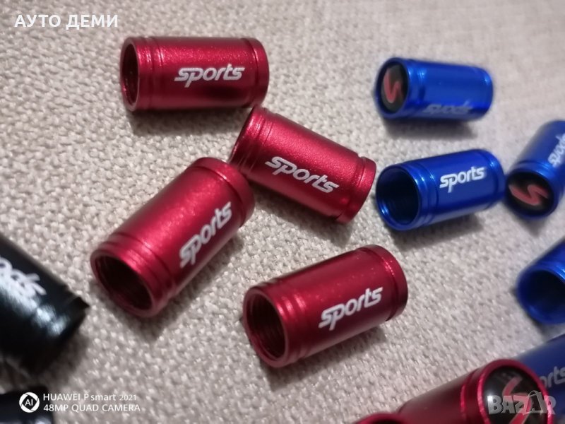 Продавам качественни кръгли метални капачки за вентили в червен , син и черен цвят надпис Sport и емблема S за Мини Купър .