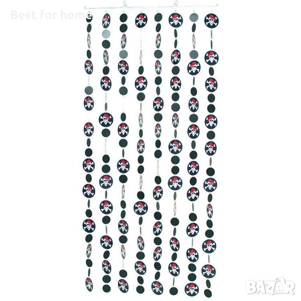 Търсите готина завеса за врата за момчешка спалня? Тогава MarketOnWeb „Пиратски“ декоративни завеси за деца е идеален за вас! 8-те ленти на тази завеса са съставени от малки дискове, отпечатани с пиратски знамена. Дисковете са свързани заедно с много малки метални пръстени. Размерите от 200 х 90 см позволяват да се закачи тази завеса на почти всяка врата.
