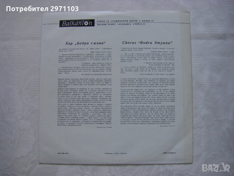 Грамофонна плоча - ВЕА 323 - Хор "Бодра смяна".