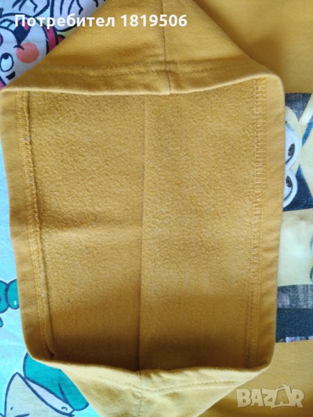 детска зимна блуза от поларена материя с апликация миньони, отвън е гладка а отвътре е мъхеста и много топли, 100% памук, цвят тъмно жълто и става за момче и момиче