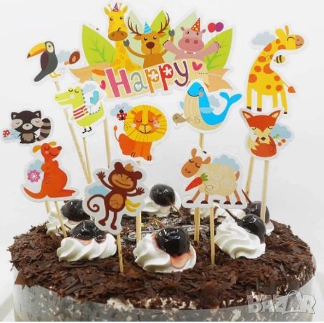 Happy животни 11 топера топери клечки украса за торта мъфини парти декор украса, снимка 1 - Други - 32805205 Happy животни 11 топера топери клечки украса за торта мъфини парти декор украса, снимка 2 - Други - 32805205 1/2