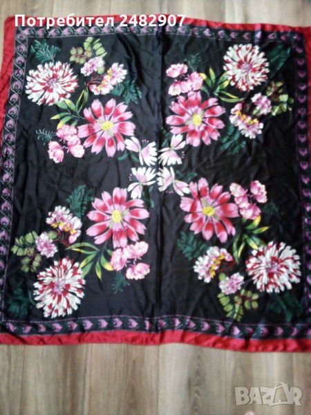 Дамски шал с флорални мотиви. Квадратен, запазен, размери - 105/105 см