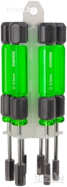 комплект шестограми, глухи ключета 6 бр, ENGINEER- Япония. Висококачествен комплект Engineer DK-14 – прецизни, магнитни вложкови отвертки (nut drivers), предназначени за работа с малки гайки и болтове в тесни пространства.