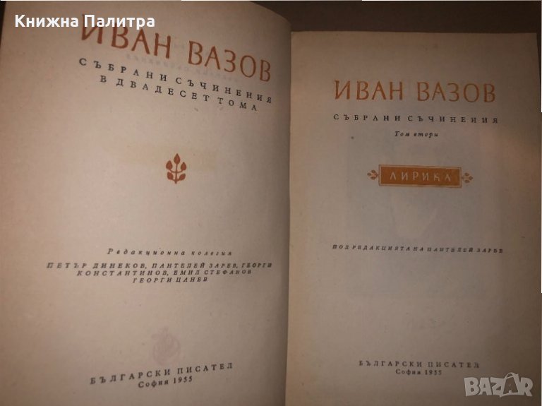 ИВАН ВАЗОВСъбрани съчинения в двадесет тома т2 лирика, снимка 1 - Други - 32814594 ИВАН ВАЗОВСъбрани съчинения в двадесет тома т2 лирика, снимка 2 - Други - 32814594 1/2