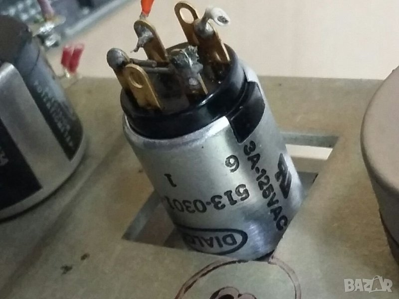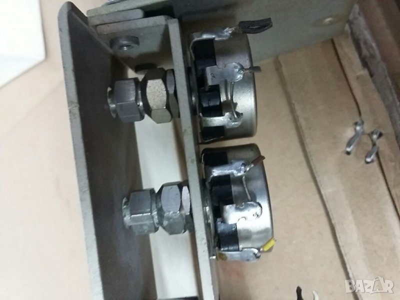 Четри прецизни потенциометара и един бутон монтирани на алуминиева основа.