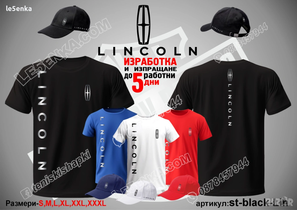Посочената цена е за шапка и тениска комплект. Само шапка - 18 лв. ,а само тениска - 32 лв. Тениските са изработени от качествена памучна материя - различна номерация и цветове - черен, син, червен и бял. Шапките са памучни с метален клипс или коланче за регулиране - тип бейсболни. Последната снимка в обявата е на таблица с размери за тениските.