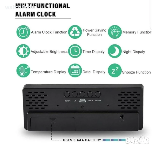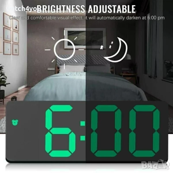 - Автоматично регулиране на осветеност на цифрите от 18:00 ч. до 6:00 ч.