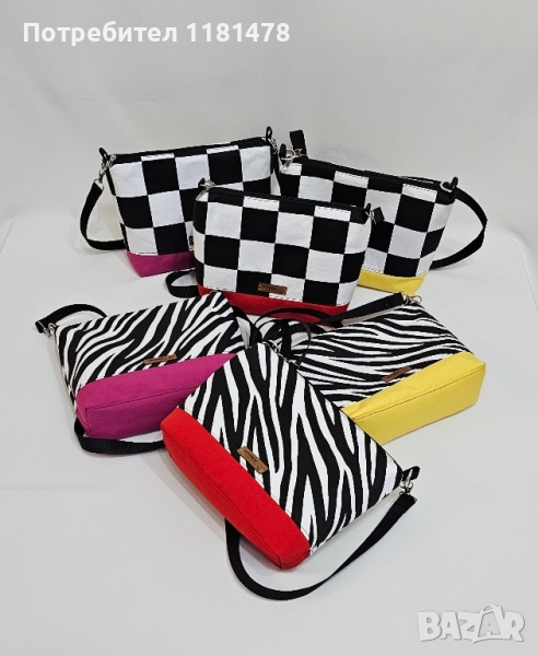 Чантите са ръчна изработка. Приблизителни размери 32х22 см. Изработени от качествени платове, с дълга регулируема презрамка, с подплата и вътрешен джоб с цип. Чудесно цветно допълнение към вашия стил.