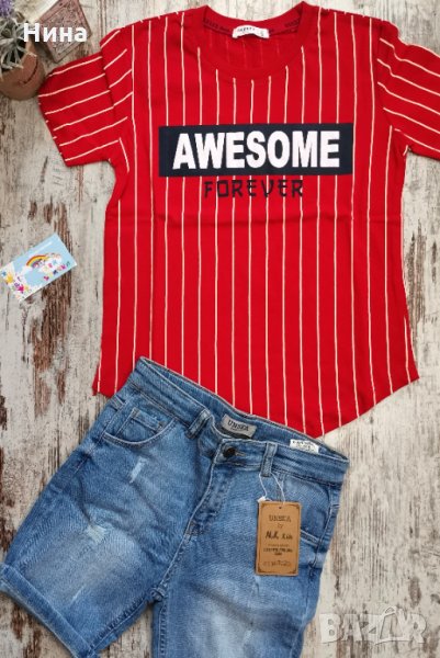 Страхотна тениска от Breeze, в червено 🧢 асиметрична дължина 🔝 и супер материя. Налични размери: 128 см, 134 см, 140 см, 152 см и 164 см 🛍️ За още моделчета разгледайте и останалите обяви в профила ми.
