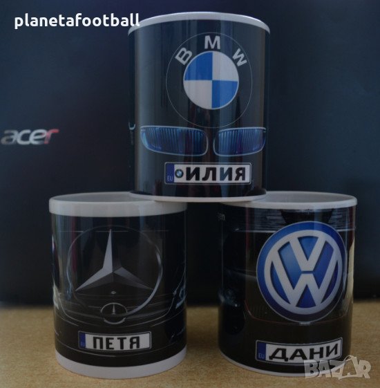 Уникални чаши за Всички Авто манияци с Ваше име! За феновете на БМВ, Меерцедес, Порше, Ферари, Хонда, Субару и др. Един невероятен подарък за всеки мъж любимият автомобил и неговото име върху номера! Уникален дизайн който може да намерите само при нас персонализиран специално за Вашият любим за всеки празник рожден ден, имен ден, годишнина, Коледа! Изпратете ни за чашата марка автомобил които желаете и име за да персонализиране подаръка за любимия, любимата. Време за изработване и доставка след приемане на поръчката Ви около 24-48 часа.
