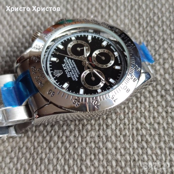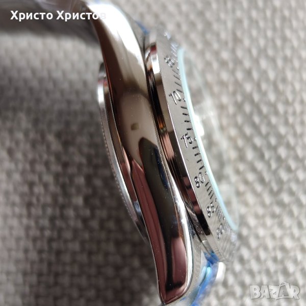 Опция водоустойчив 80 лв.Стоманен корпус,безел, верижка и закопчаване.Ден от седмицата,датник,24 часов индикатор.Фосфоресциращи стрелки.Двойно заключване на закопчалката.Изключително високо качество на изработка.