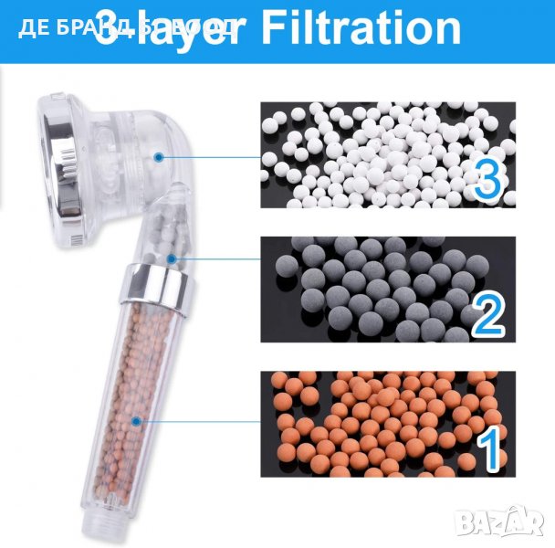 Душ слушалката с филтър е оборудвана със специален филтриращ патрон премахващ до 99% от вредния хлор и до 85% от пестицидите.