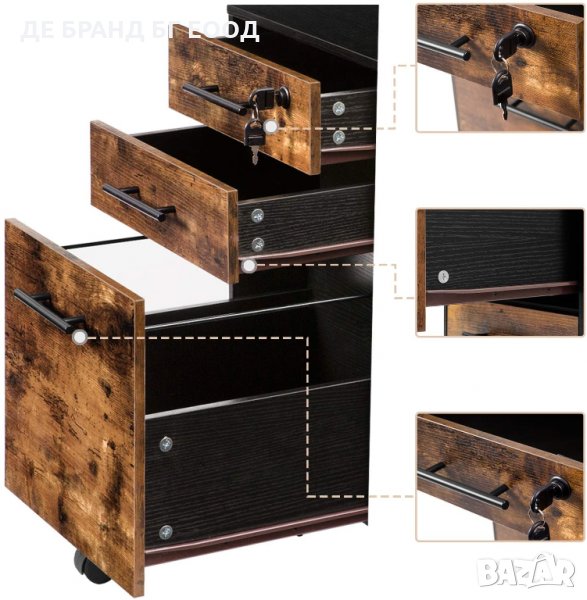 Мобилен офис шкаф с 3 чекмеджета с ключалка