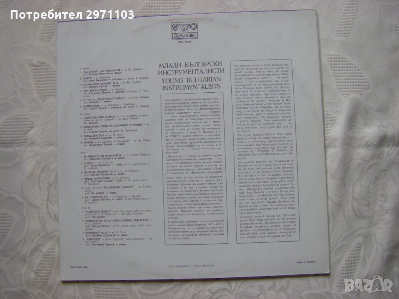 Грамофонна плоча - ВЕА 10389 - Млади български инструменталисти