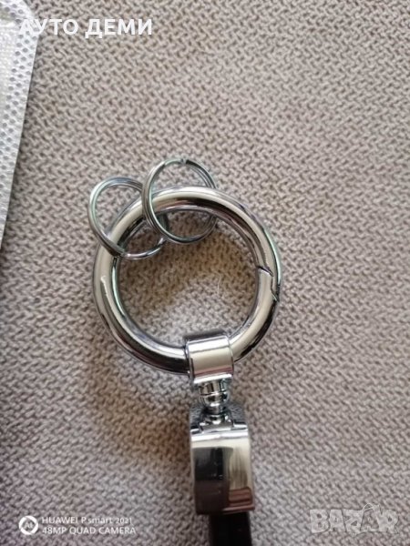 Дебела двойна кожа и метална хромирана закопчалка с две халки за ключове .