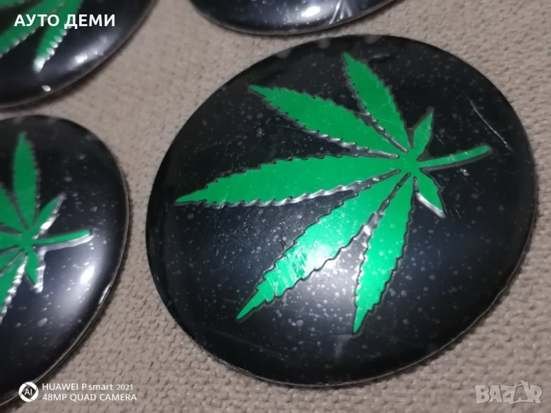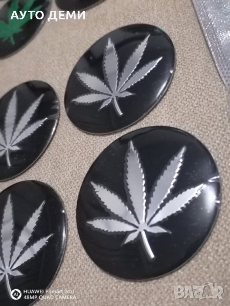 Стикерите са с релефни емблеми на трева в цвят хром и зелен.