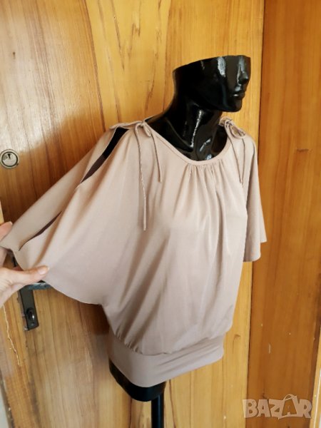 Бежова блуза с оголени рамене и къси ръкави тип пеперуда М → Обява 32844164