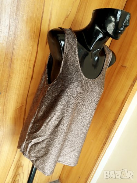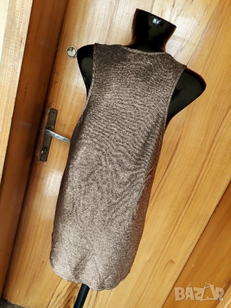 Мъхест потник туника в кафяво със сребрист ефект Л → Обява 32844339