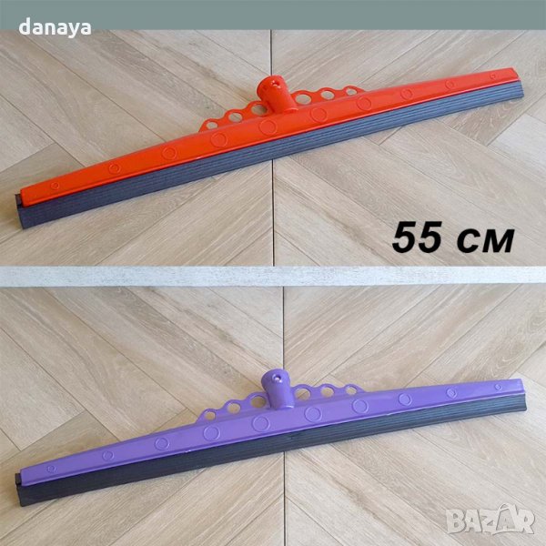 Голяма подочистачка за подсушаване на под, обиране, избутване на вода. Чистач, който отстранява без остатък мръсотия и вода от плочки и гладки подови повърхности. Голяма широчина – 55см, четката е идеална за бързо почистване в големи помещения или за лесно подсушаване на банята у дома. Може да се използва и като стъклочистач. Мопът има дебела мека гума 0.6см. Предлага се без дръжка. Различни цветове.