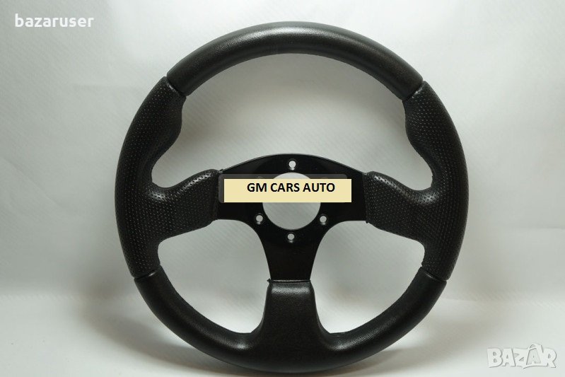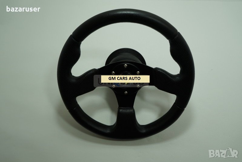Спортен Волан за Автомобил/Универсален/ Ф33 см. Подходящ за монтаж на всички марки автомобили /посредством адаптор-главина/. Модерен дизайн. Лесен монтаж. Изработен от:метал, кожа, пластмаса. Цвят:черен. Диаметър на волан:Ф 33см.