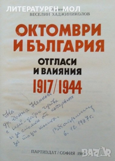 Октомври и България - отгласи и влияния 1917/1944. Веселин Хаджиниколов. Книга с автограф от автора.