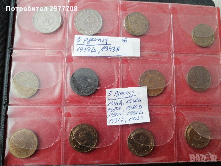 Колекционерски лот от немски монети, долината на река Рейн, Северен Рейн/Вестфалия.