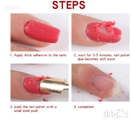 нанесете върху гел лак ,след 1-2 мин с инструмент премахнете лесно.