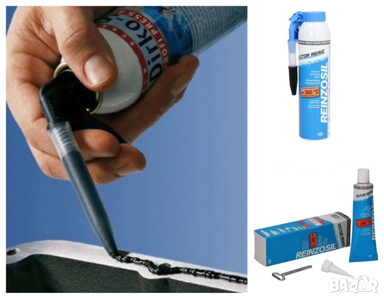 Топлоустойчивият силикон REINZOPLAST е тестван в лабораториите на VICTOR REINZ, както и от милиони водачи на моторни превозни средства в цял свят. Този продукт може да използва успешно при залепването на картер, капак на клапани, колектори, водни помпи, скоростни кутии, диференциали и други.
