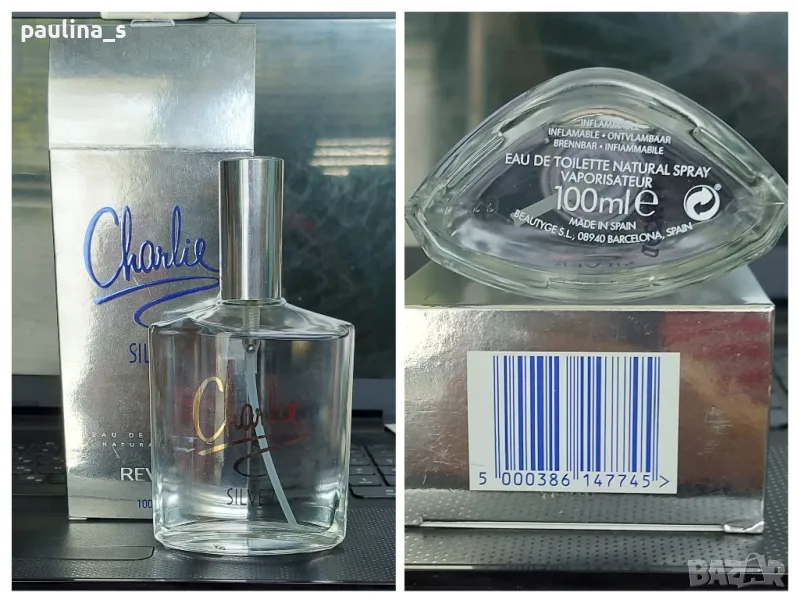 2. Колаж / Revlon / Дамски парфюм Charlie SILVER 100ml EDT. Цената е крайна 45,99лв. Популярен парфюм, стар бач код, потресаваща трайност и сияж. Реални снимки. Стартира от 1977г, не преходен аромат, до сега. Наподобява на Куул уотър фроузън на Давидоф.