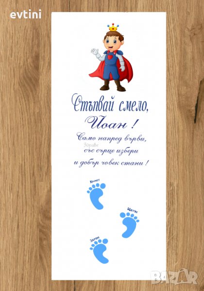 Ето тук се включваме и ние като Ви изработим платно за прощъпулник според Вашите желания и персонализирано с името на детето и датата на това събитие.