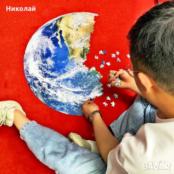 Кръгъл пъзел на планета Земя 1000 части . В центъра на пъзела се намира континента Европа. Частите са с дебелина 1.5 мм и от задната страна са номерирани , допълнително има схема за редене също номерирана , ако усетите затруднение по време на редене. Подходящ за подарък за деца , мъже , жени , астрономи , рожден ден , имен ден и др.