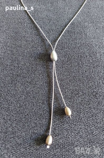 Сребърно колие тип чокър с позлата на двете педантулни зърна, лазерно матирани. Подарен ми е преди 32г в Цюрих.