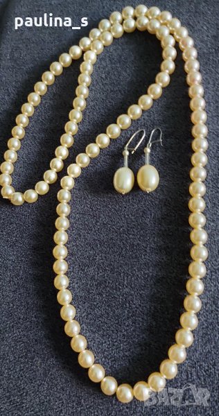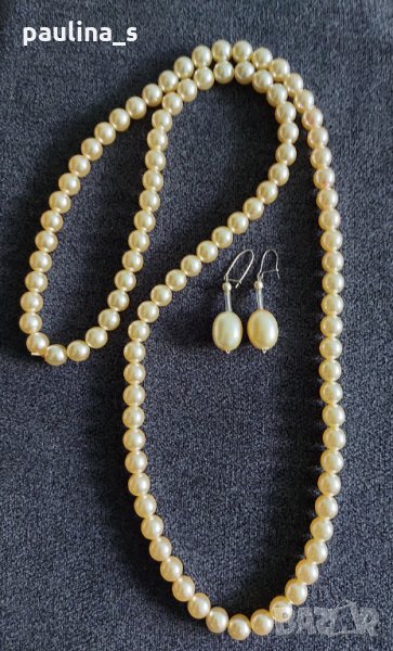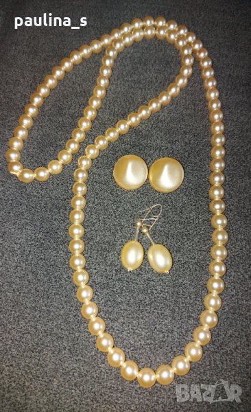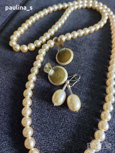 1. Перлен гердан от соц-а с обеци. Герданът е пренанизван, от преди 60г е, не знам перлите дали са истински, но са тежки и купени от Съюза - дължина 93см. Цената е крайна 32,99лв.