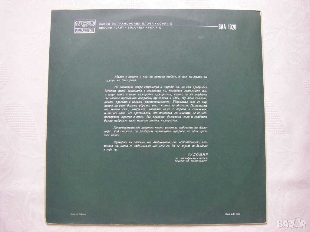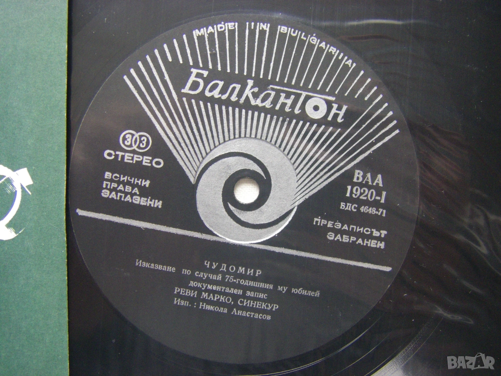 Грамофонна плоча - ВАА 1920 - Чудомир - литературна композиция по негови произведения, изпълняват Никола Анастасов и Люба Алексиева.